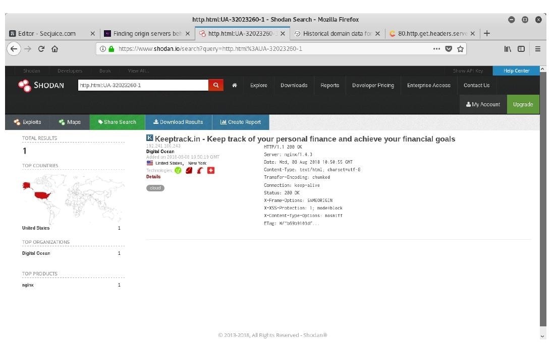 借助SecurityTrails这样的平台,任何人都可以在茫茫的大数据搜索到自己的目标,甚至可以通过比较HTTP标头来查找到原始服务器。