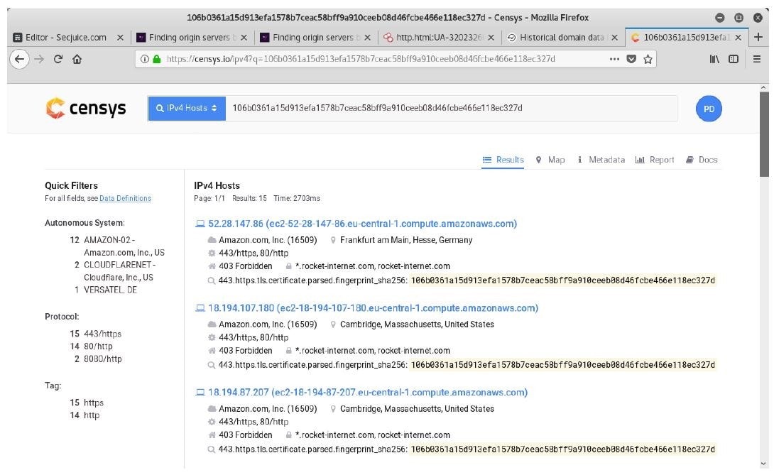 此时,攻击者将看到一个使用特定证书的IPv4主机列表,而真实原始 IP就藏在其中。