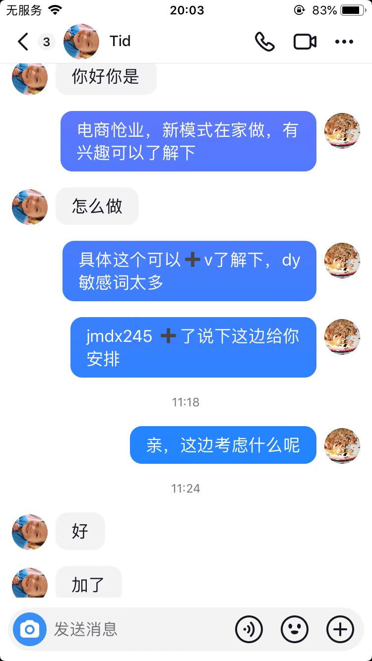 我那个朋友的玩法是,让每个员工自己想办法解决10个抖音账号,大部分员工都是除了自己注册一两个以外,剩下的七八个都是找亲朋好友借用的。然后为了账号的稳定性,每个抖音账号一天只私信20条,目前没有出现过封号的情况,非常稳定!