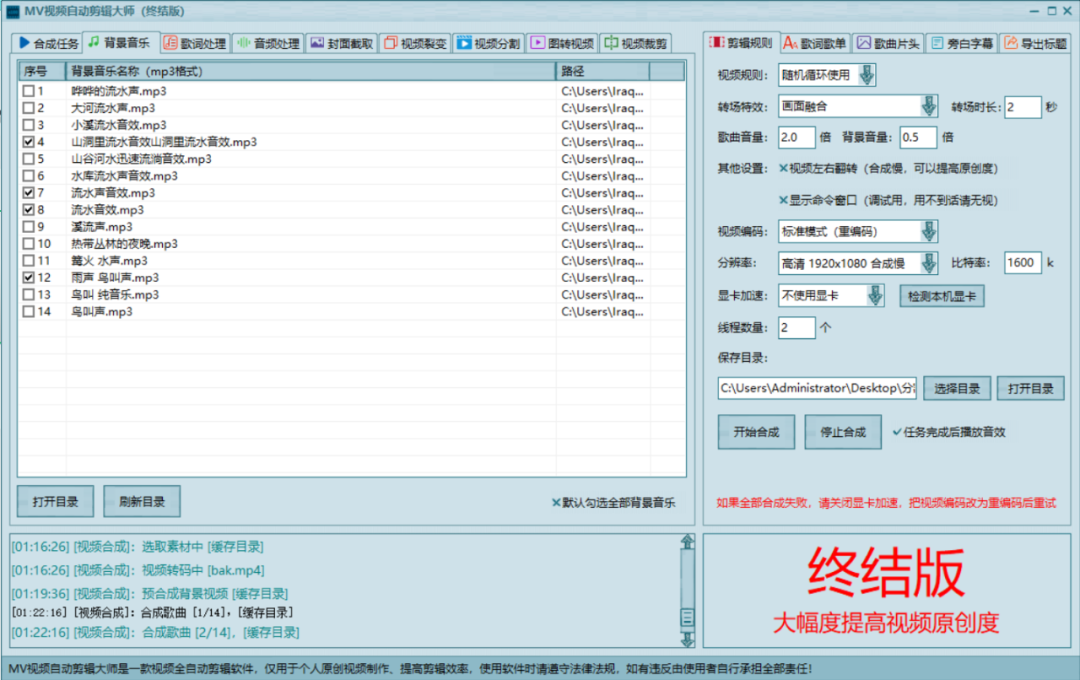 视频批量剪辑大师是一款专为批量混剪而设计的视频剪辑软件,它能够通过电脑全自动地生成多个独特的短视频。