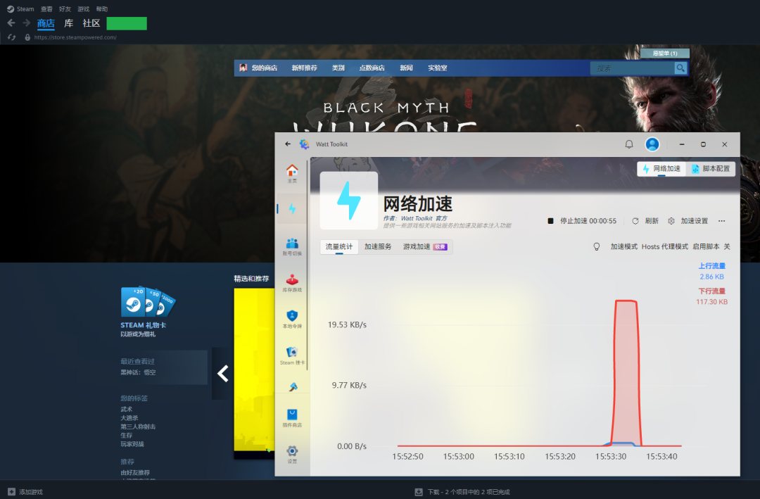 但是呢有一点,这款游戏的上架,会吸引很多没有用过Steam的朋友们,很多人下载注册了Steam,发现这个软件打开商店会各种卡顿加载不出来,很多人为了赶紧玩上,又去购买了加速器之类的,其实玩黑神话悟空是不需要加速器的。