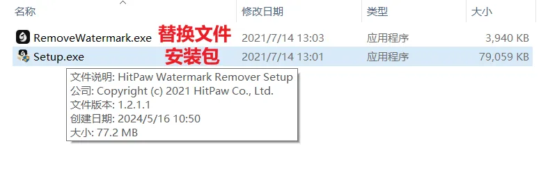 压缩包内有两个文件:一个替换补丁和安装包,首先我们需要双击“setup.exe”安装应用程序。