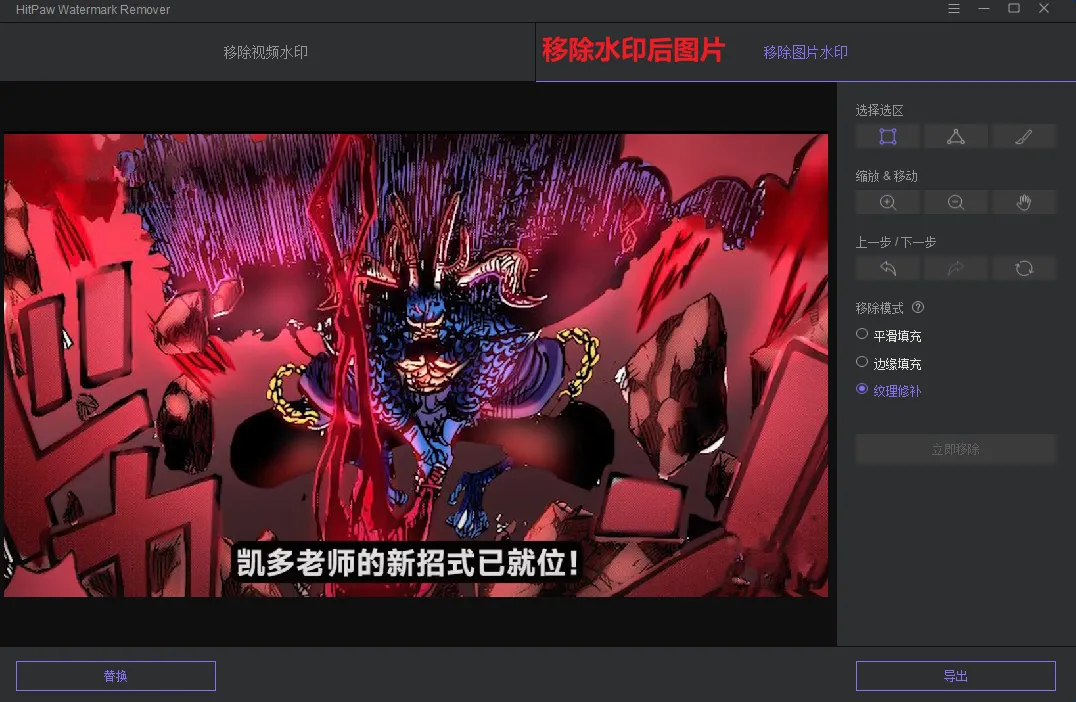 移除水印的效果同样不负众望,痕迹相当小,完全可忽略不计,还是非常不错的。